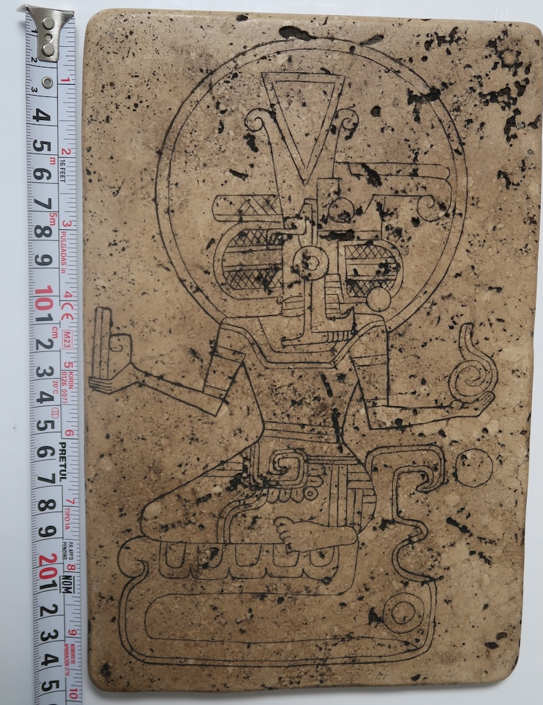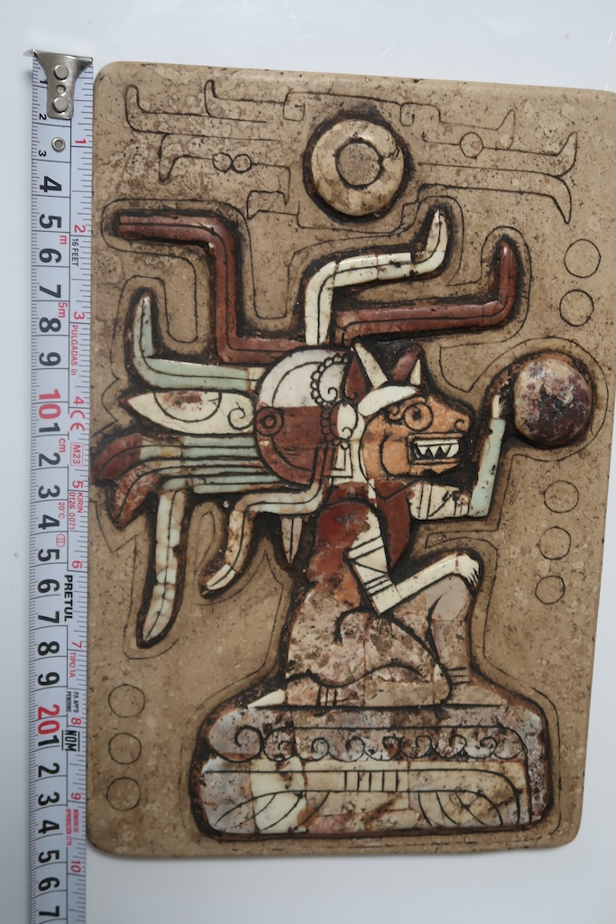 Stylistically, this relief mirrors the mysterious artifacts discovered in the valley of central Mexico, where Mark Russell has conducted excavations uncovering symbols and figures that defy conventional cultural classifications. The fusion of animalistic and humanoid forms hints at mythic beings revered for their role in guiding, protecting, or communicating with celestial powers.