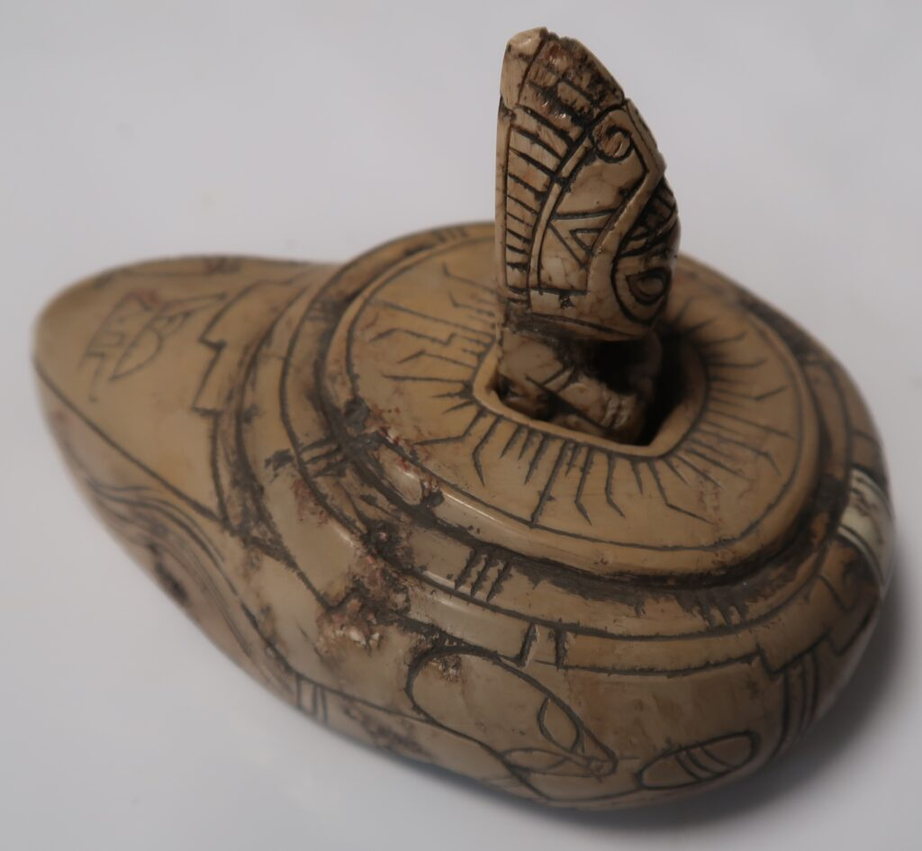 The damaged textures, weathered lines, and ancient patina add to the impression of an artifact that has survived countless cycles, carrying within it the quiet memory of passage between worlds.