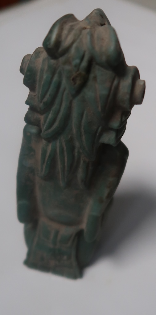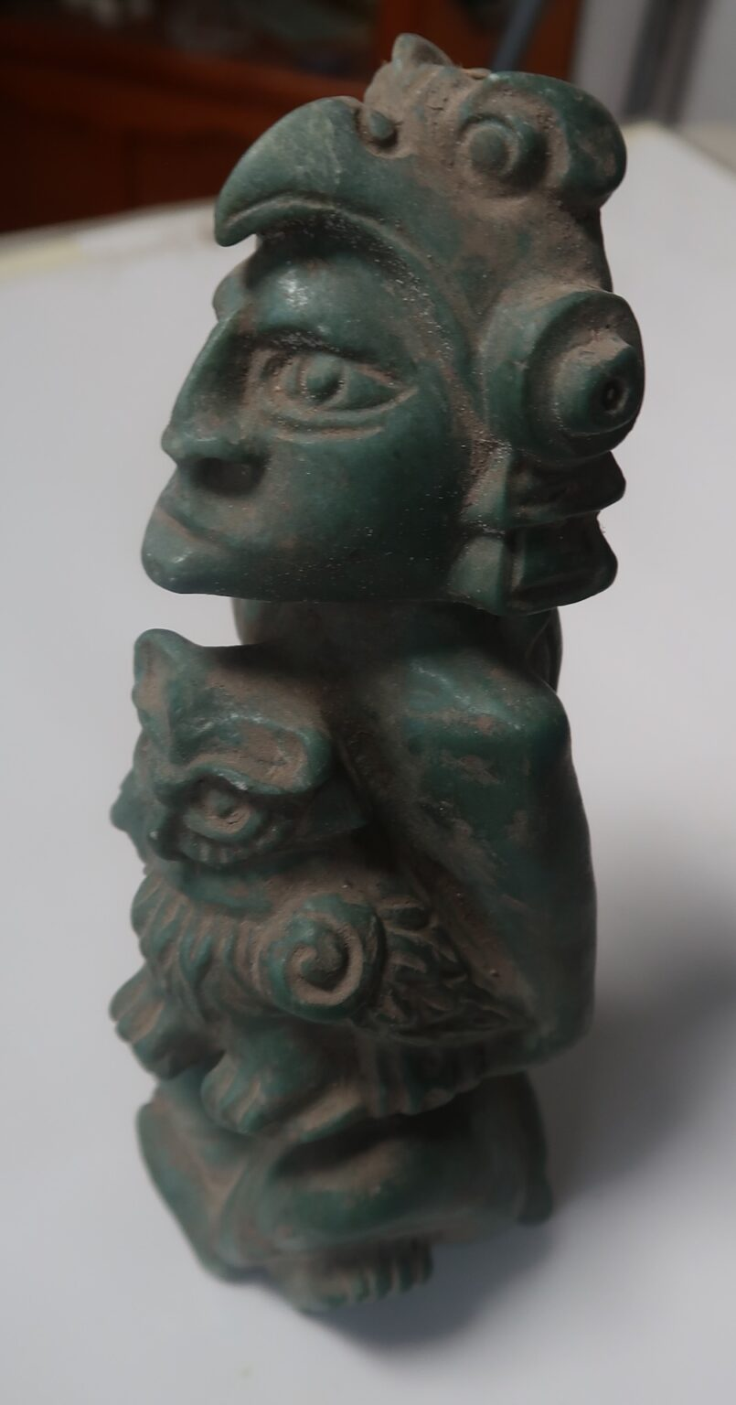 The effigy’s stylized anatomy, exaggerated facial contours, and compact vertical composition are consistent with the mysterious humanoid motifs uncovered in the central Mexican valley where Mark Russell conducts his excavations. The craftsmanship suggests symbolic rather than literal representation, pointing toward ritual significance or mythological storytelling.