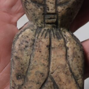 The figurine’s almond-shaped eyes and serene posture evoke watchfulness rather than sleep, as if it remains aware, waiting for another traveler who can read the ancient symbols and complete the ritual of Crossing.